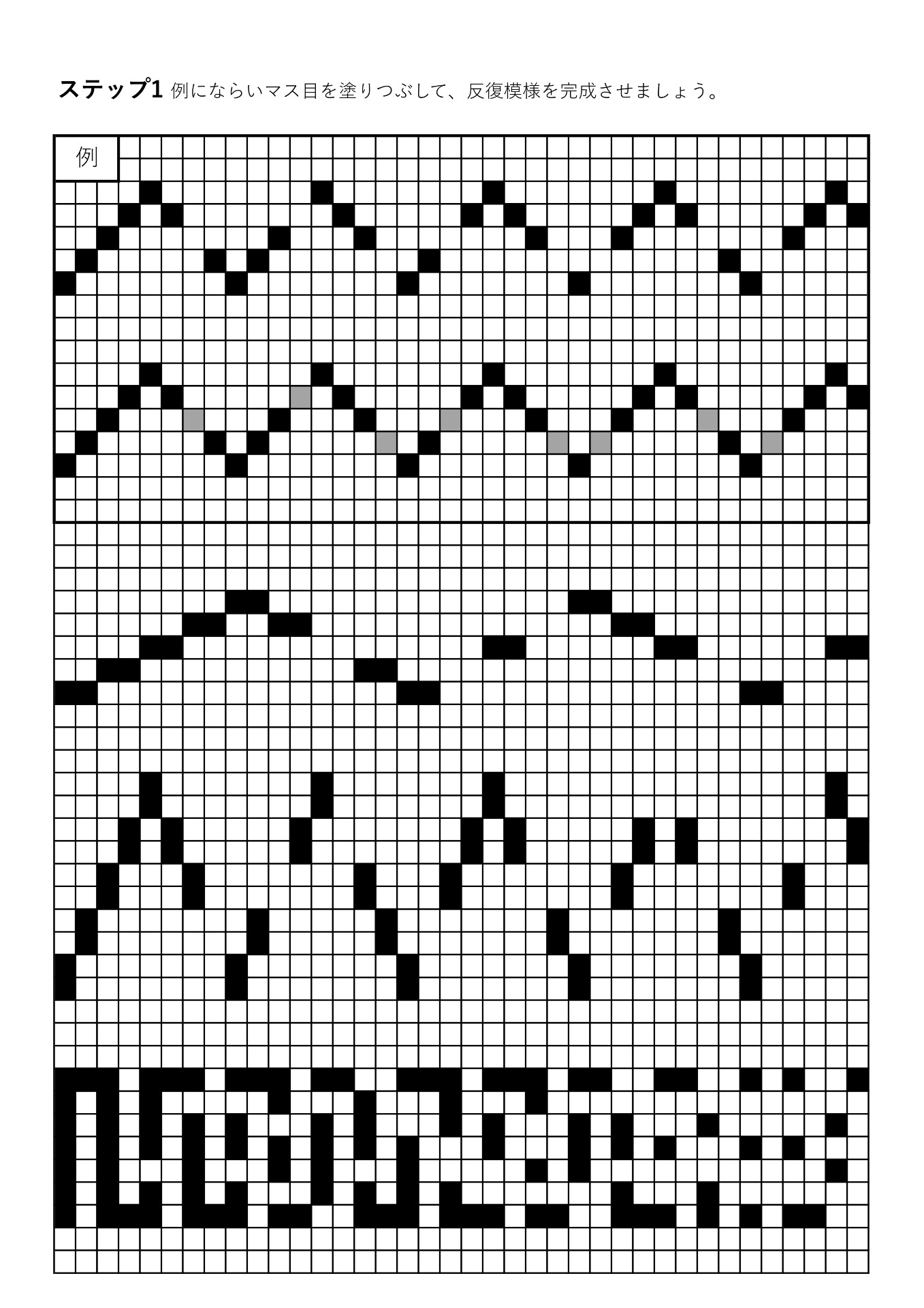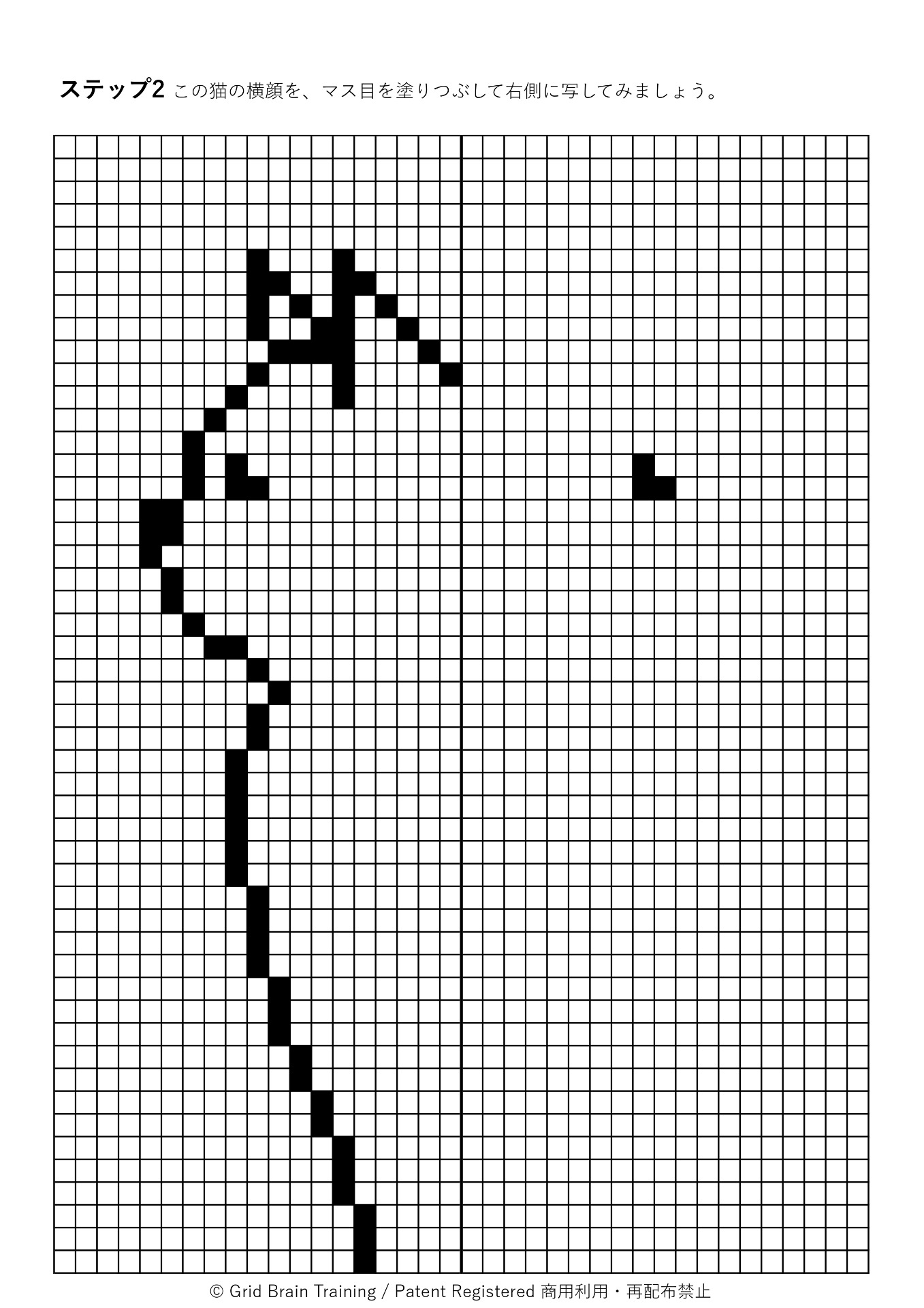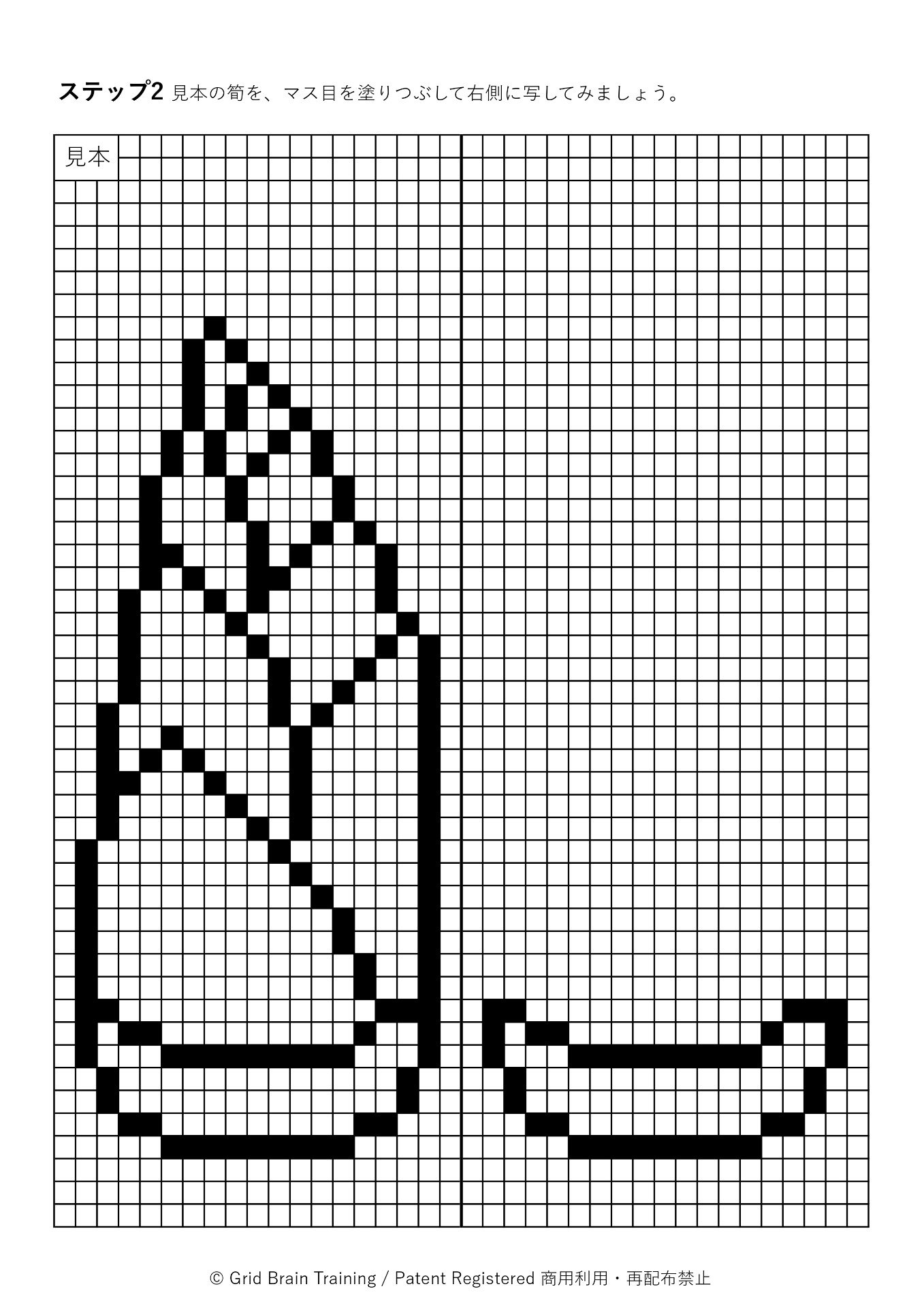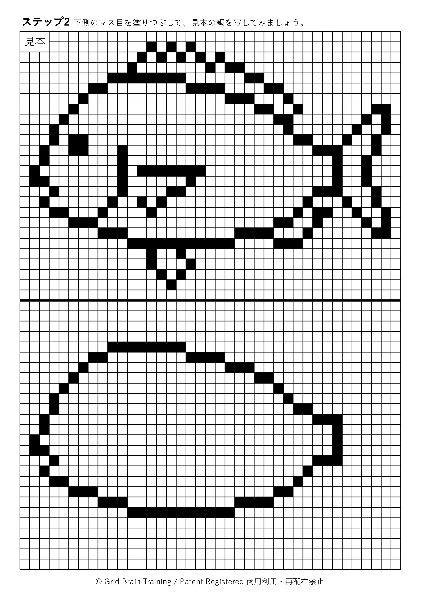 グリッド脳トレには、マス目を塗りつぶして模写するステップがあります。